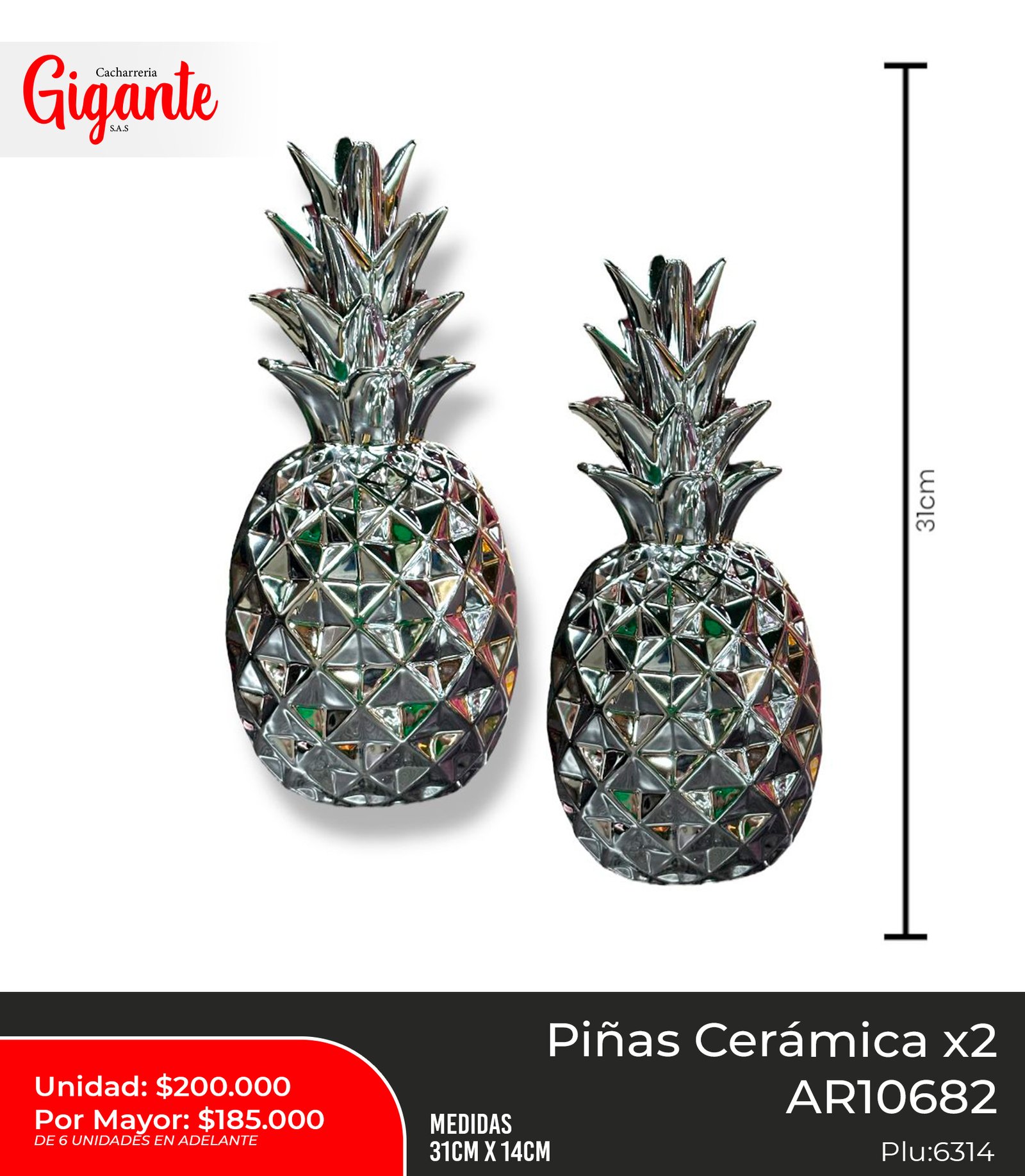 PIÑA CERAMICA X2 AR10552 PLATA